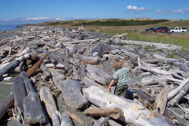 Washington State beaches are littered with logs. The waves and storms throw the logs up onto shore in a kind of tiddelie-winks sort of mess. As we were jumping logs to get ’round from one beach to another I had a thought.