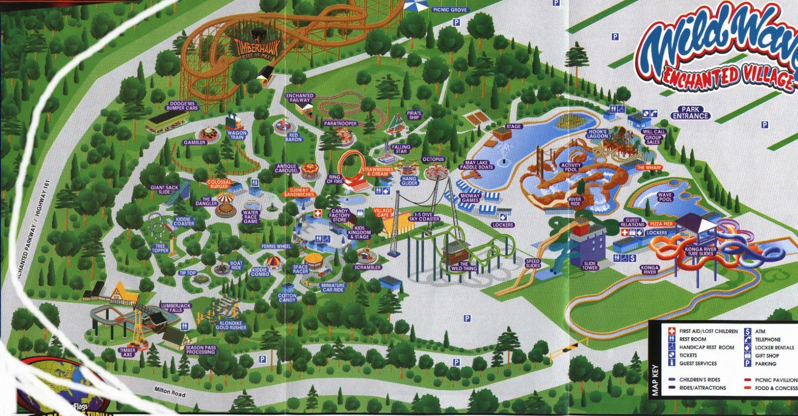 *The Enchanted Village theme park was first opened in 1977 by Byron Betts. The initial 12-acre (49,000 m2) park site held only a half-dozen rides. In 1984, Wild Waves Water park was built adjacent to Enchanted Village[2]; the combined amusement complex became known as Enchanted Parks. In 1992 park chief executive Jeff Stock paid $8 million for Enchanted Parks. Late in 2000 Six Flags purchased the park for $19.3 million.[3] In 2000 the park had grown to over 70 acres (280,000 m2), with more than 20 rides, and was the Northwest’s largest water park.[1] In 2002 approximately 1000 seasonal workers were employed for positions as rides operators and food service workers. Many of these seasonal workers are also students of local high schools. [4]
