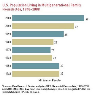 Space. We need our personal space. Space is a commodity. We are saving money and expenses by being together but, guess what we don’t like it! I’m starting to understand the reason why most families in America are spread out over the states. I’ve family all over the place: Aunts and Uncles in Minnesota, Maryland, Arizona and Hawaii, cousins in Texas, Oregon and Illinois. Don’t get me wrong, we love each other, but from a distance. Lets be honest, American’s in general love their independence –from each other!