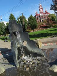 | The Maritime Heritage Park Fountain and the Whatcom Museum as seen from W. Holly Street |
