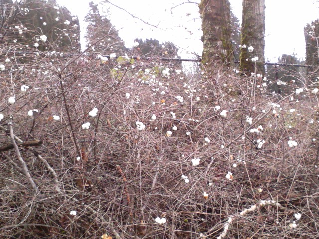 Being a child of the Northwest I know not to eat white berries. The berries do not scare me. Today, on this day, I see them as stars. The trail is empty as I stand surrounded by a Snowberry universe. For a moment I float. I am an astronaut floating outside my craft. Floating like a leaf that navigates gently down a river, unaware of its direction or the dangers of rapids. The leaf floats where the water takes it, the water goes where all water goes, home to the ocean. I float.