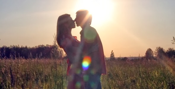 We are young, meeting in a field sun shines on his golden locks,