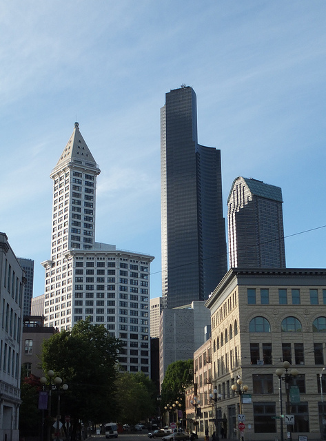 I wanted so desperately to get off the boat and to my office. Working at a cable advertising company almost every office has a television in it. I wanted to see everything, collect information and try to figure out what was happening. Would Seattle’s tallest building, the Columbia tower, be a target? It was over 900 feet high, the tallest building west of the Mississippi River when it was built in 1985. As we walked off onto the dock into the heart of Pioneer Square, that black tower dominated my sight and thoughts. I tried to visualize a plane hitting it, wondering what the people on the streets of New York were going through. It was painful to imagine.