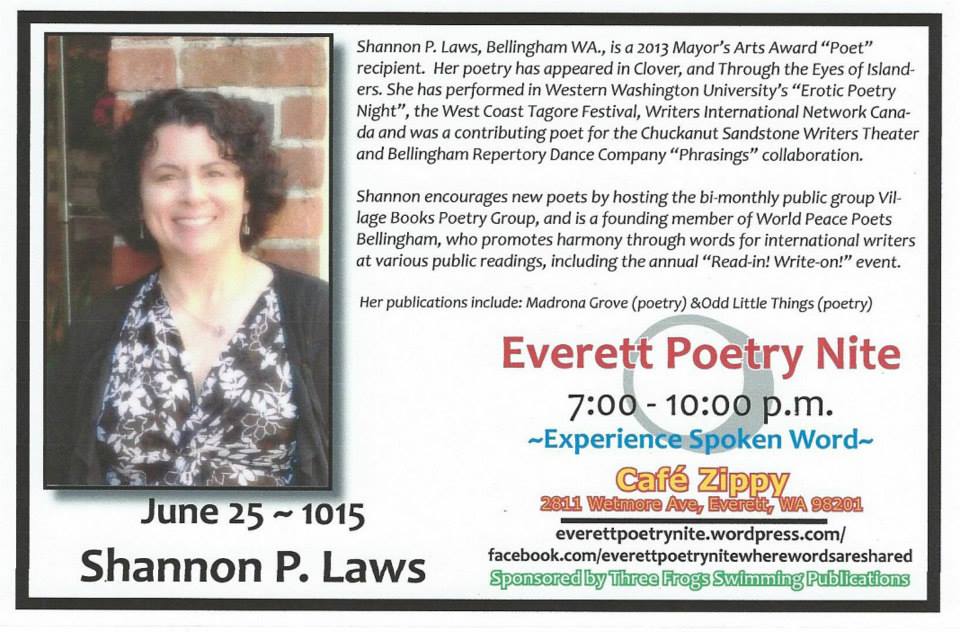 Shannon Laws is an award-winning poet, performer, and advocate for the arts. She has been recognized with two Mayor’s Arts Awards and the Dr. Asha Bhargava Memorial Award — Community Champion. Her work has been featured in numerous journals and anthologies, and she has captivated audiences at esteemed literary events, including the Jack McCarthy Evergreen Invitational Slam, SpeakEasy, Poetry Night, Kitchen Sessions, and the West Coast Tagore Festival.