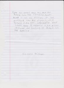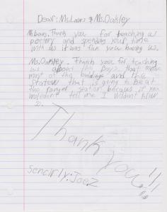 Yesterday Janet came over to my home and shared some of the Thank You notes from Kendall. What a warm surprise! I am so thankful for the experience! These cards made my day.