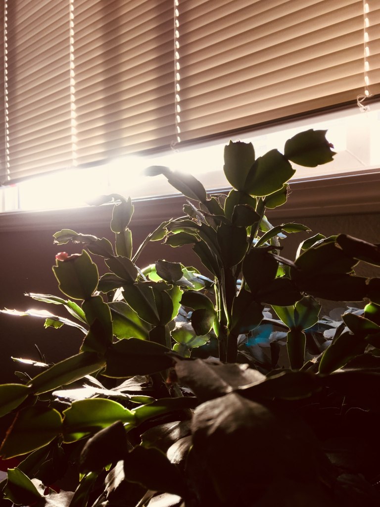 Monday is the first day of SPRING! The sun is coming through my window. I watched it as it arched around the buildings, right-sided shadows slowly making their way left. The Christmas Cactus takin’ it all in.