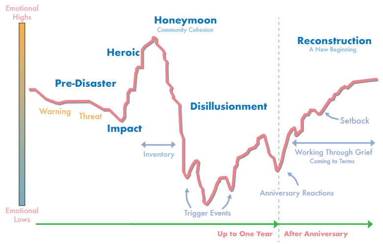It illustrates the mental health of an emergency worker responding to a disaster over the course of a year and a half. This is the “normal” curve of the ups and downs MENTALLY. Although I am not a nurse on the front lines, I do have an essential job. I work as a Family Housing Coordinator for shelter and transitional housing. I worked every day from 2019 until about April of 2021. Now I get Fridays off which I am very thankful for.