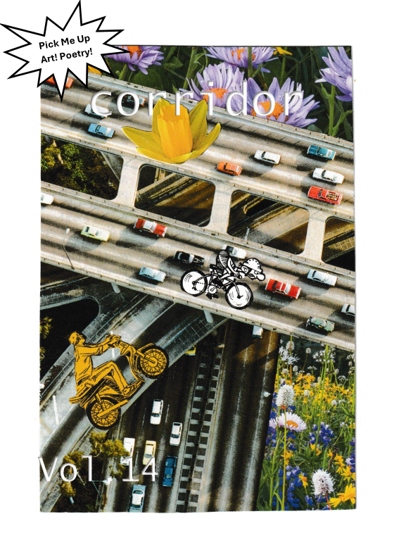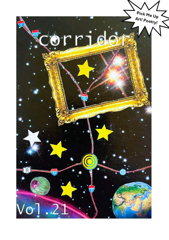 What is Corridor? A limited edition monthly poetry zine called “Corridor”. It gets its name from the I-5 corridor that mimics how thoughts travel through the highways of the mind.