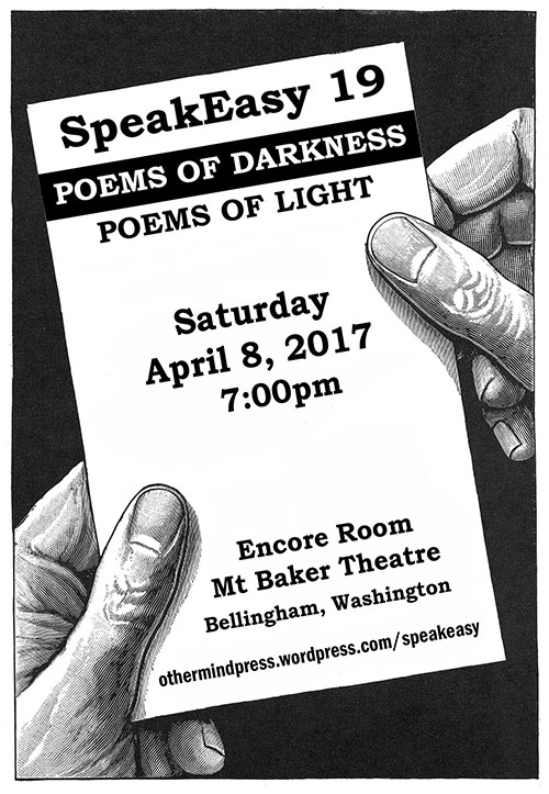 You’re invited… SpeakEasy 19: Poems of Darkness, Poems of Light Saturday, April 8, 2017 at the Encore Room in Mt Baker Theatre
